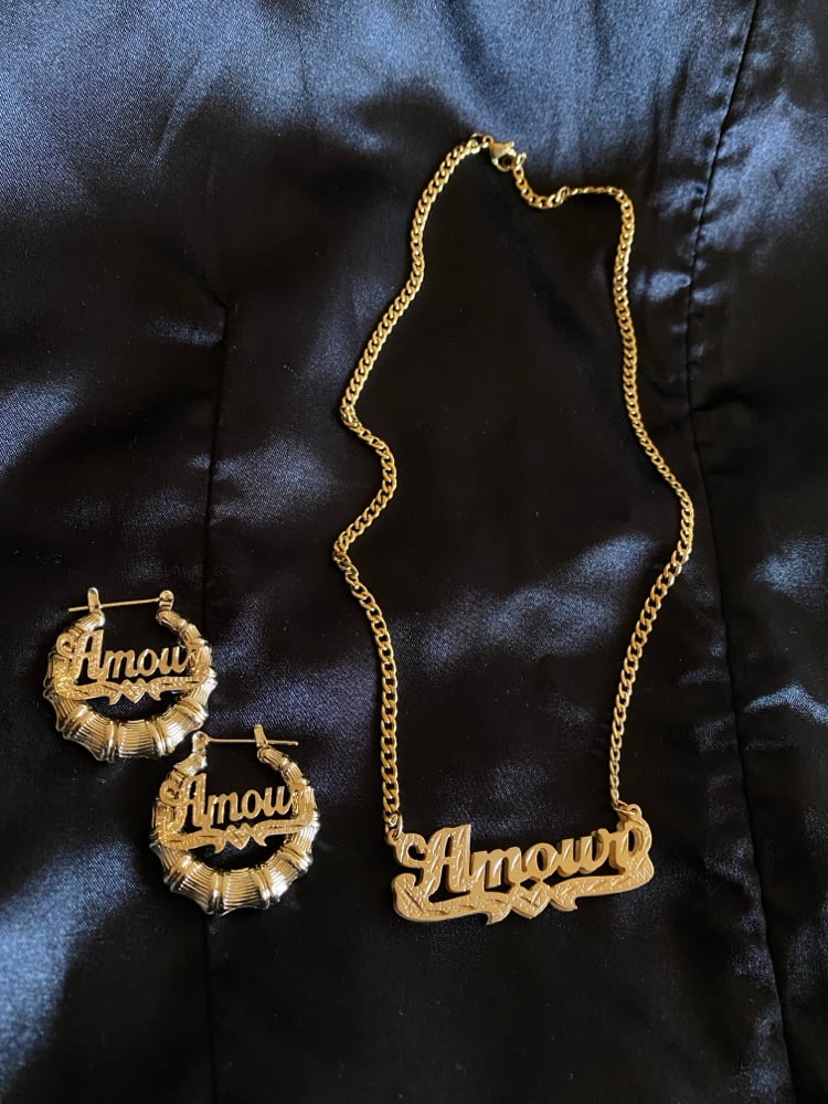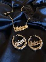 Personalized Bamboo Sets, 14K Gold Plated Double Layer Necklace. Can be customized with or without tail plate . Can be customizable Gold, Silver & 2-Tone . Turnaround: 3weeks.